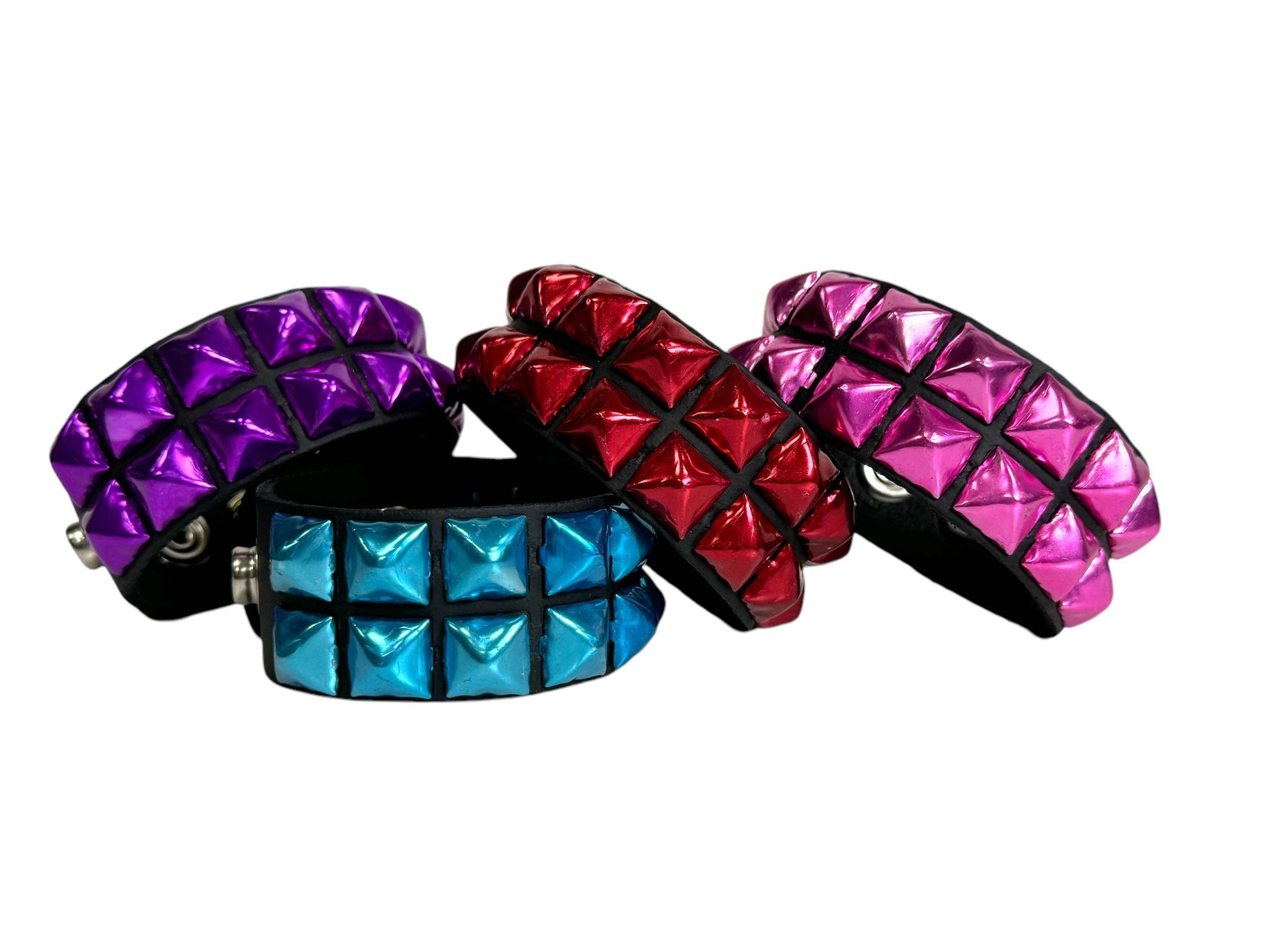 BC112 METALLIC COLOR 3 ROW 1/2" PYRAMID STUD SNAP BRACELET
