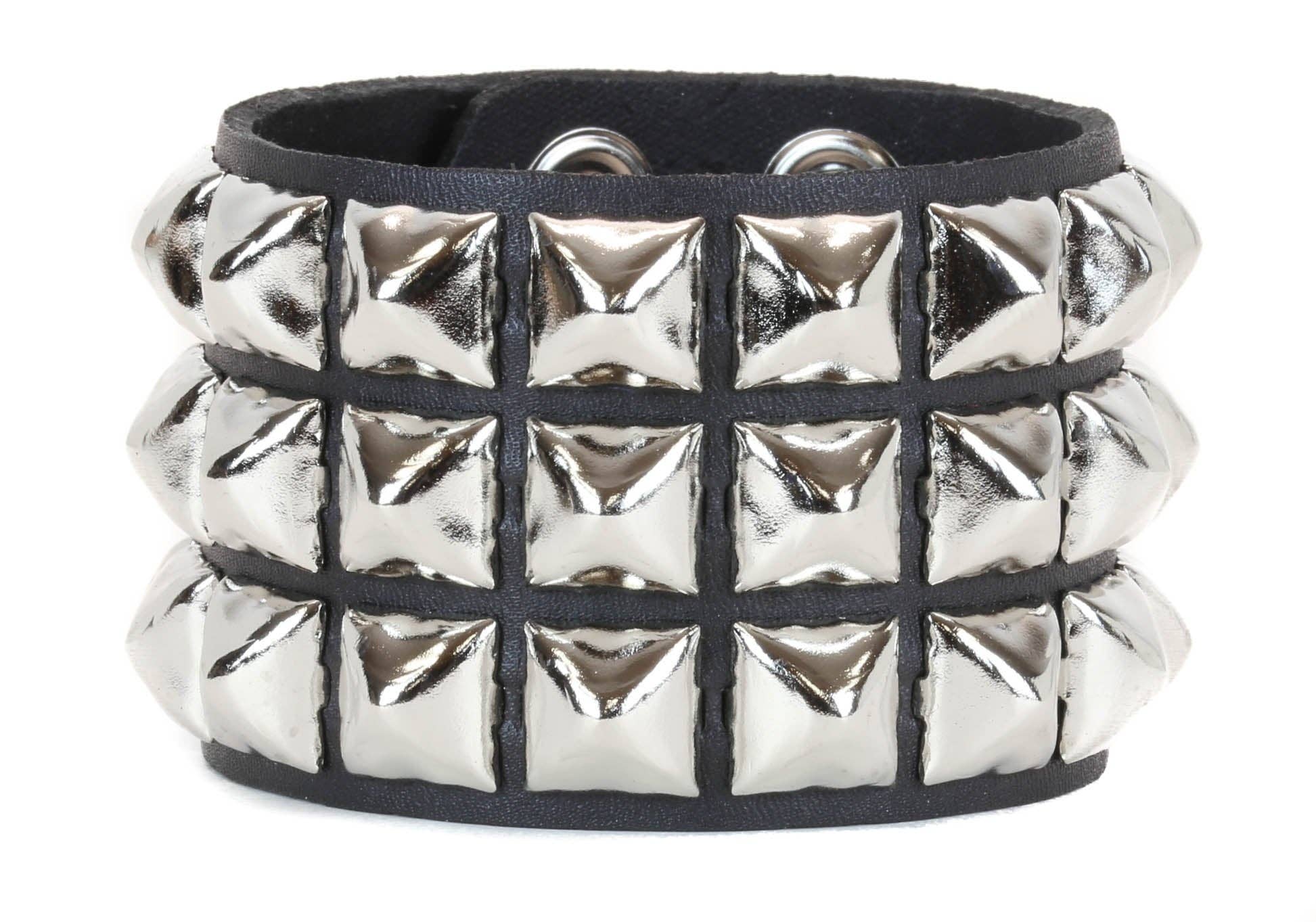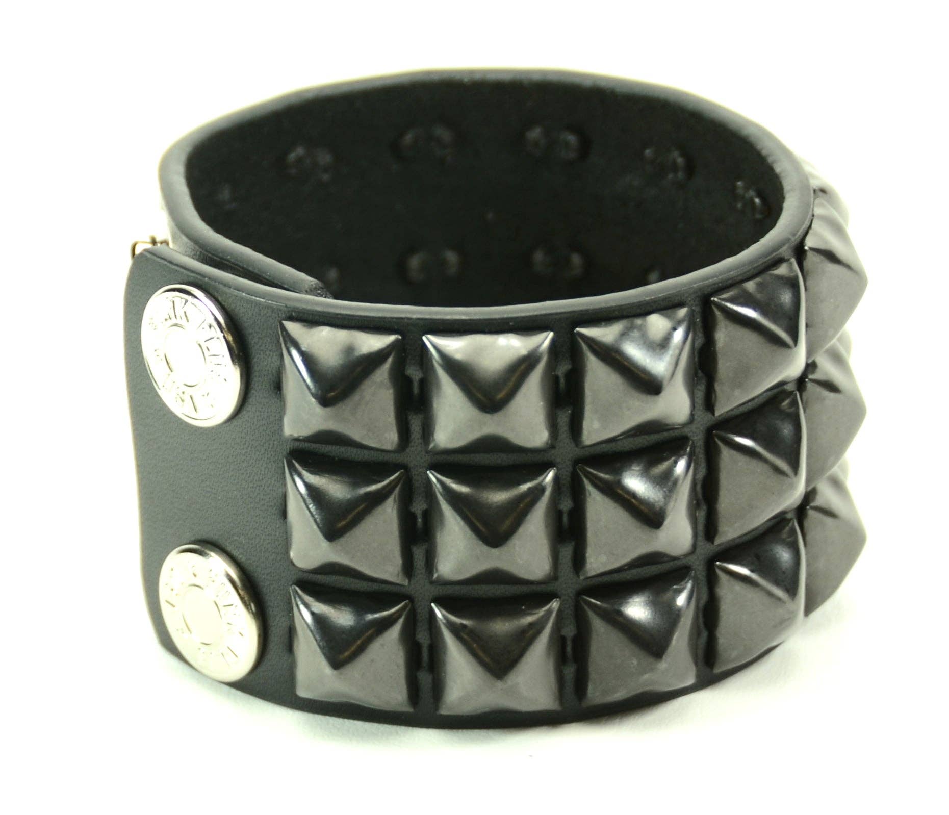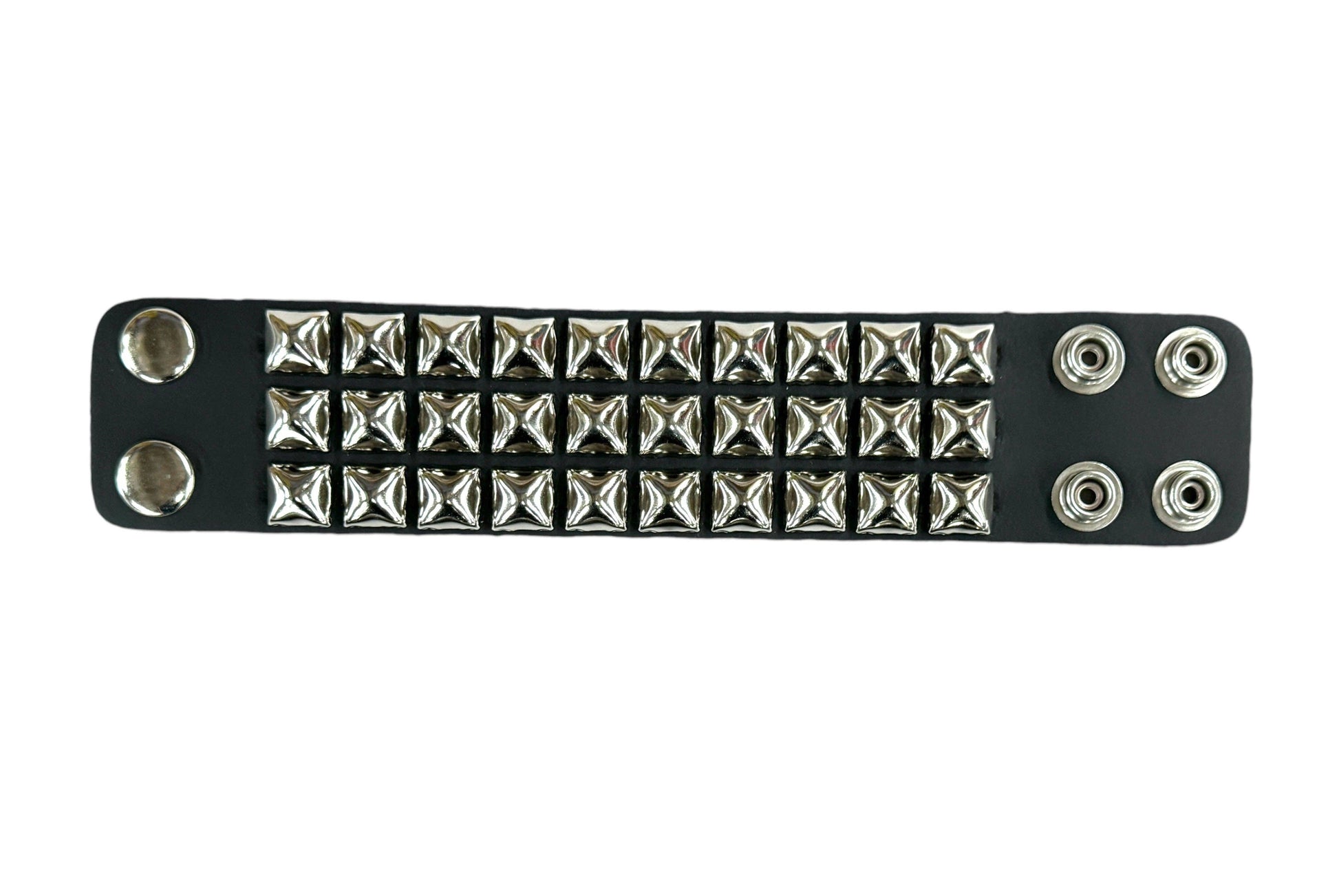 3 ROW 1/2" PYRAMID STUD SNAP BRACELET