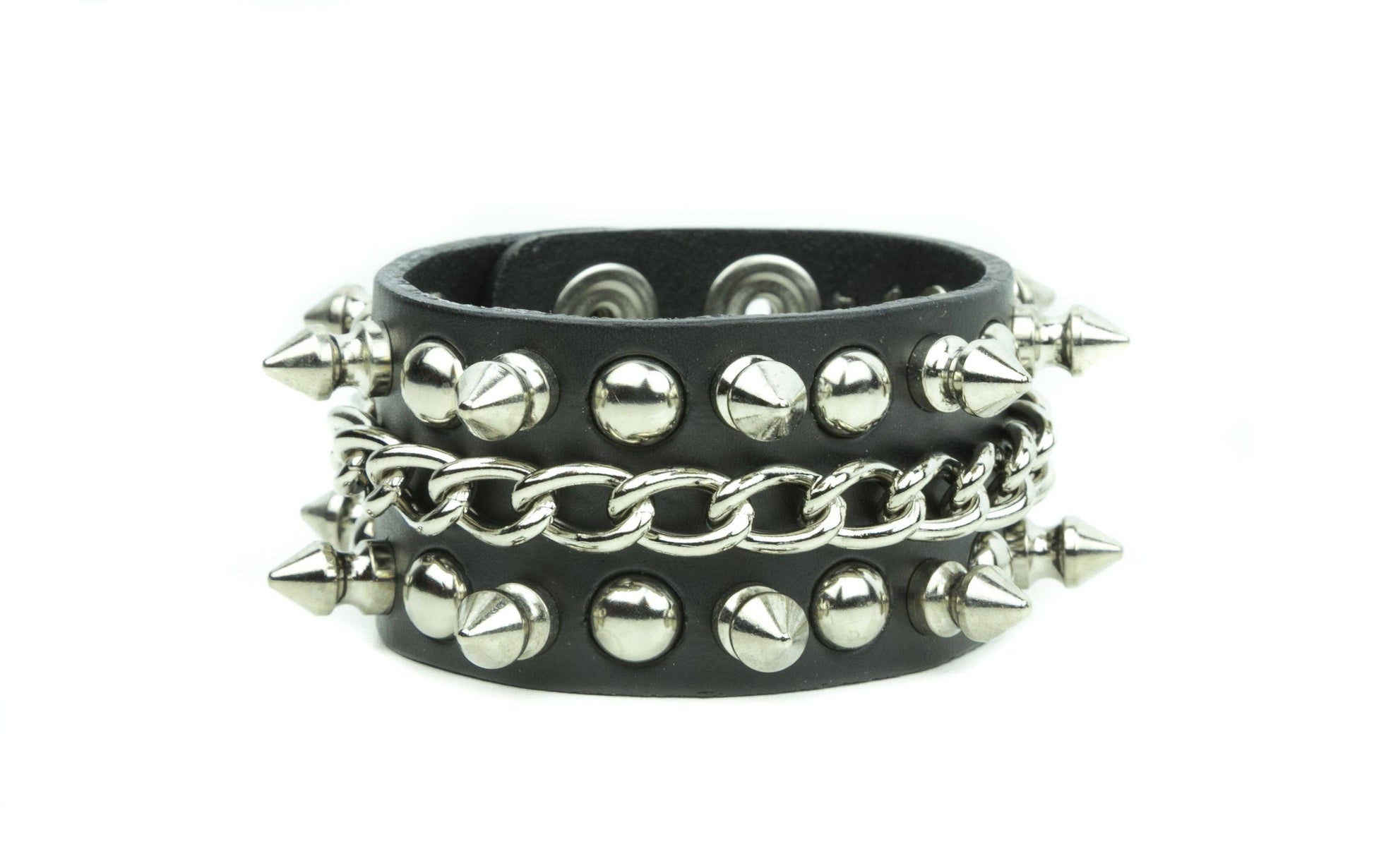 BRACELET WITH 1/2" SPIKE, CHAIN & ROUND STUD