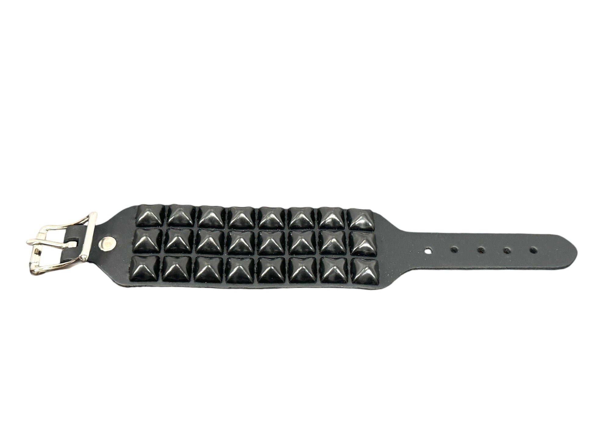 BUCKLE BRACELET WITH 3 ROW 1/2" PYRAMIDS 1 3/4" WIDE